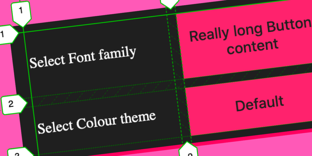 Esta vez, los dos elementos de la cuadrícula anidados se alinean perfectamente. La grilla también es flexible, si introducimos un título más largo en uno de los botones, el resto de elementos responderán en consecuencia.