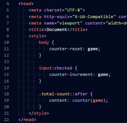 Este tipo de conteo y visualización podría estar codificado, pero no es divertido. JavaScript también podría hacer este trabajo. ¿Pero CSS? Mmmmm. ¿Puede? CSS tiene contadores, por lo que ciertamente podemos contar la cantidad de botones. Pero ¿cómo calculamos sólo hasta un determinado botón? Resulta que se puede hacer.