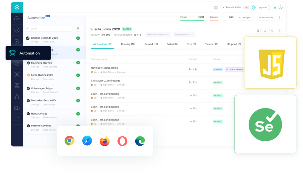¿No sería fantástico tener un registro de todas sus pruebas, cuáles se están ejecutando, registros de cuándo se ejecutaron y cuáles fueron sus resultados? Aquí es donde LambdaTest es difícil de superar porque tiene una interfaz de usuario para todo eso a través de su panel de automatización.